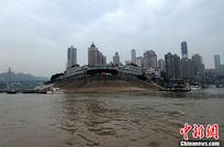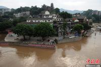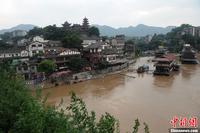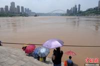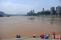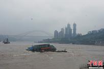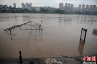 7月2日,轮渡趸停在长江中。重庆海事局消息,由于长江水位涨幅较大,重庆海事局已将橙色预警提升为红色水上交通安全预警。这是2013年入汛以来首个红色预警。中新社发 陈超 摄