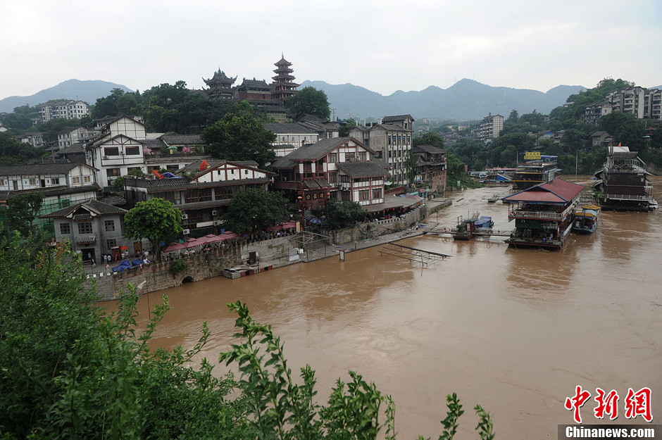 洪峰过境重庆主城 磁器口商铺被淹