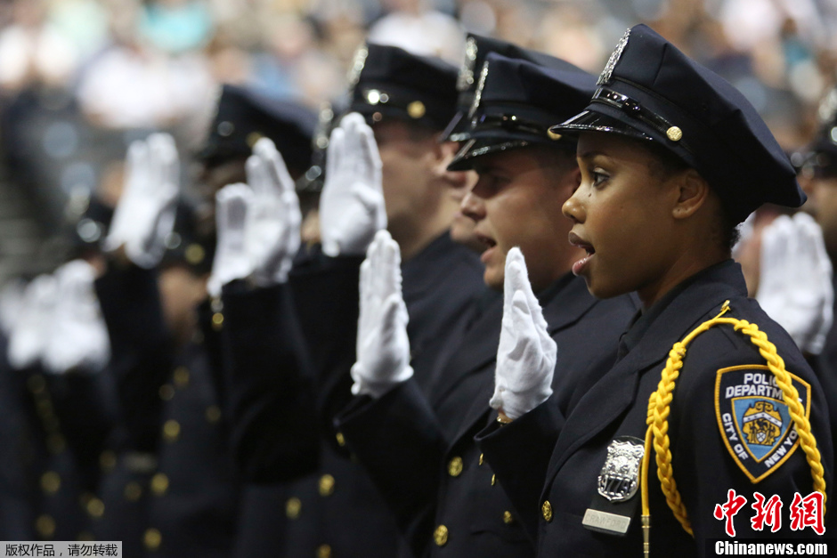 当地时间2013年7月2日,美国纽约,纽约警察学院的毕业生在巴克莱中心参加毕业典礼。