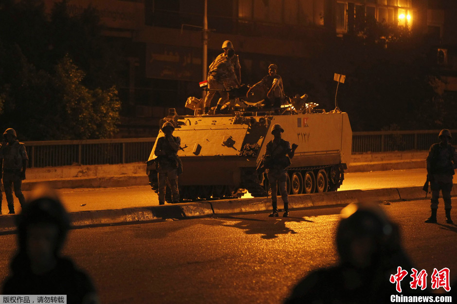 埃及军方宣布穆尔西下台 军队街头部署装甲车