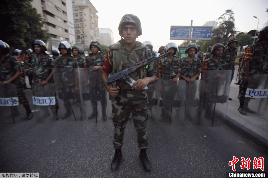 埃及军方宣布穆尔西下台 街头部署军队值守