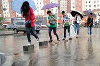 唐家山堰塞湖区降暴雨 北川老县城部分遗址被淹