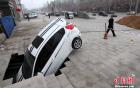 美公路现大坑 女子驾车躲闪不及被“吞没”