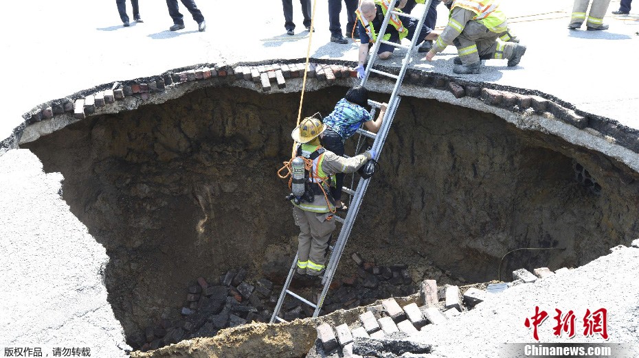 7月4日,美国一名女子开车行驶在俄亥俄州西北部托莱多一条公路上时,突然马路中央出现了一个巨大坑洞。该女子躲闪不及,连人带车一同掉进路坑中。当紧急救援人员赶到时,该女子顺着一个梯子才爬出了巨坑。该女子名叫帕梅拉•诺克斯。她虽然并未受伤,但吓得不轻。