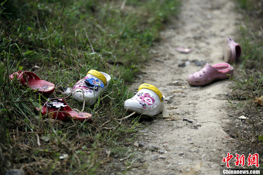 7月3日,广西柳州,三名孩子留在岸上的鞋子。颜篁 摄 图片来源:东方IC 版权作品 请勿转载