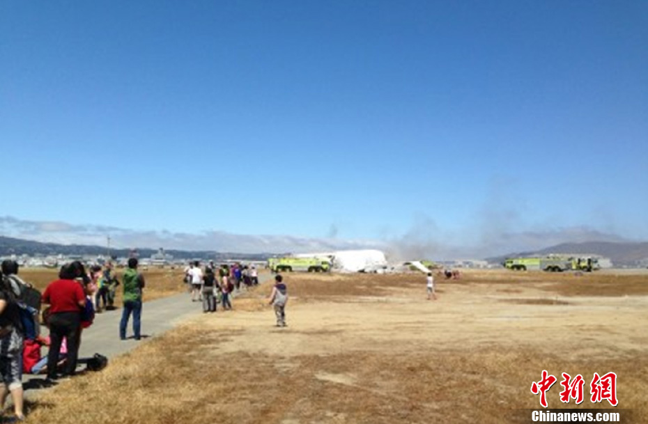 北京时间7月7日凌晨,韩国韩亚航空公司一架波音777客机在美国旧金山机场着陆时失事,机尾折断,引发大火。事发后,机上多名乘客紧急逃生避难。据韩亚航空首尔总部表示,客机载有291名乘客和16名机组人员,其中包括有141名中国人。当日,记者获悉,该客机搭载浙江籍师生34名,目前2名失踪女生中已找到1人,正在当地的医院进行治疗,另一人仍处失联状态。中新社发 徐达 摄