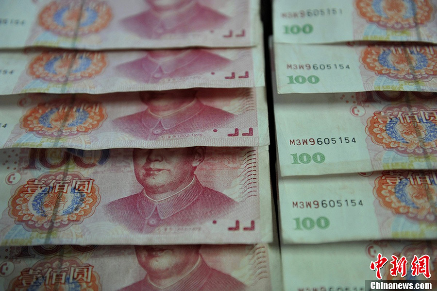 7月8日拍摄的湖北保康警方缴获的M3W9开头的百元假币。杨韬 摄 图片来源:东方IC 版权作品 请勿转载
