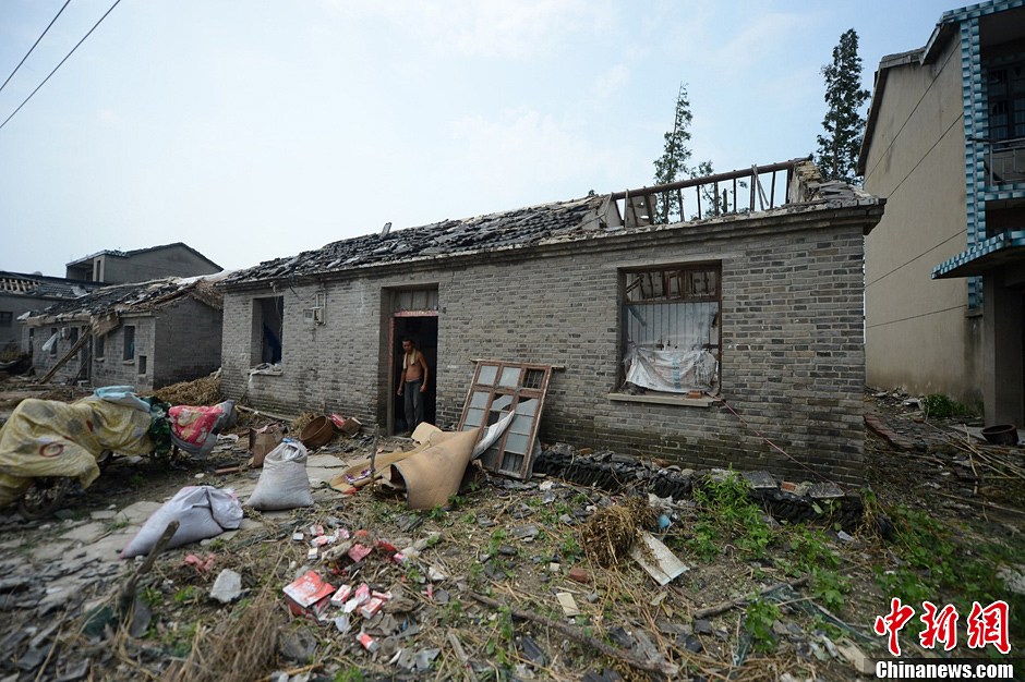 7月8日,受灾最重的三垛镇,遭龙卷风袭击后,受损现场一片狼藉,灾民正在进行自救重建家园。孟德龙 摄