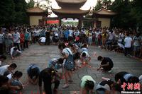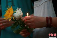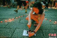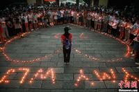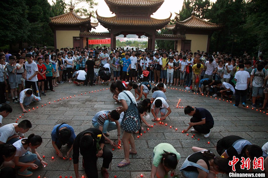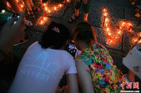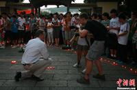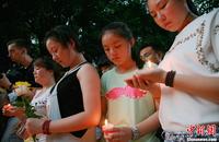 7月8日,市民在江山市须江公园内为韩亚空难遇难中国女生默哀祈福。7日凌晨,在美国旧金山国际机场着陆时失事的韩亚航空公司波音777型客机已经造成至少2人死亡,韩亚航空向浙江江山市政府发去传真,称根据登机牌,参加江山中学赴美夏令营的两名女生王琳佳和叶梦圆在此次空难中不幸罹难。中新社发 李晨韵 摄