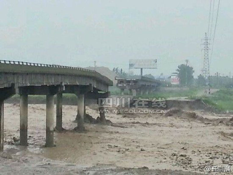 四川暴雨致桥梁垮塌