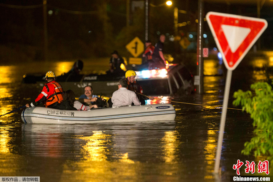 多伦多遇特大暴雨 救援人员乘船解救被困民众