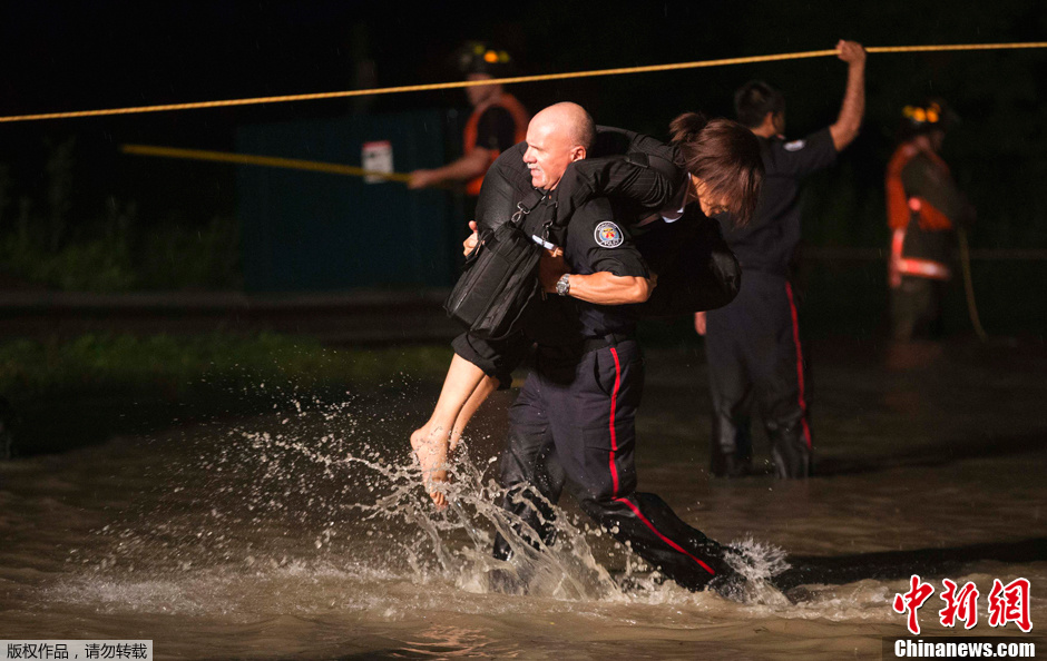 加拿大多伦多遇特大暴雨 救援人员解救被困民众