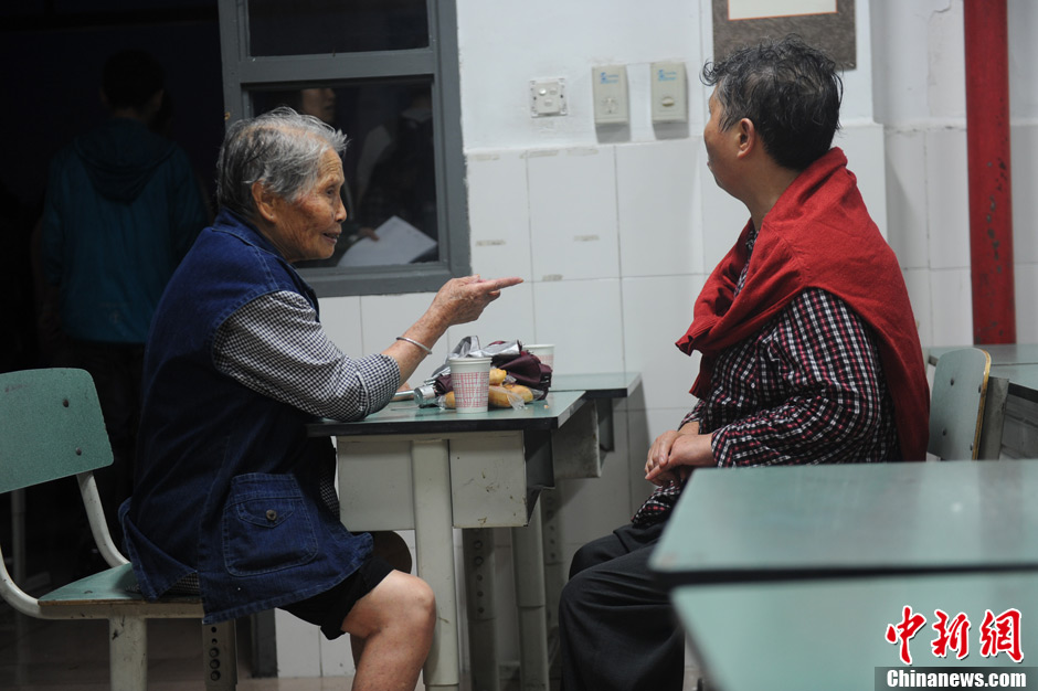 7月10日,都江堰中兴镇三溪村发生特大型高位山体滑坡,导致11户村民房屋被毁。当日晚,从山体滑坡灾区转移出来的数百被困人员在中兴九年制学校得到妥善安置,一些失踪者家属也从远处赶来,在这里焦急等待着亲人的消息。图为安置点现场。中新社发 张浪 摄