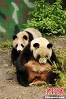 7月15日,在四川核桃坪野化基地接受野化培训的14只大熊猫状态良好,平安无恙。四川7·10特大暴雨对卧龙保护区造成了“5·12”汶川地震以来最严重的破坏,暴雨引发卧龙保护区内泥石流20处,垮方18处,农业、道路交通、通信、电力、供水等基础设施受损严重。中新社发 卧龙供图