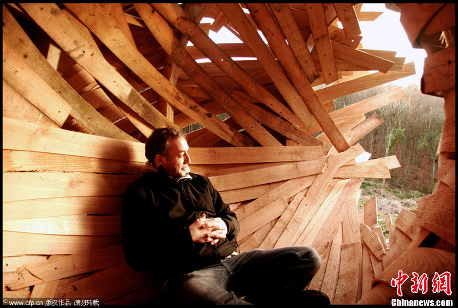 英国建筑学院学生打造原生态树屋 似巨型虫茧