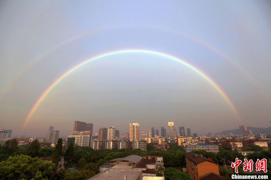 福州天空现罕见“双彩虹”