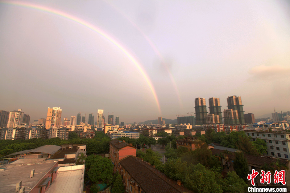 福州天空现罕见“双彩虹”