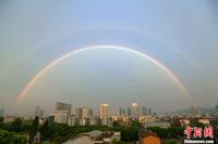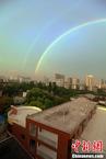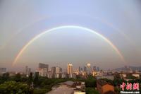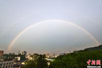 7月16日早上5:30许,福州出现罕见“双彩虹”,双层彩虹犹如美丽大桥横跨福州城。胡滨 摄