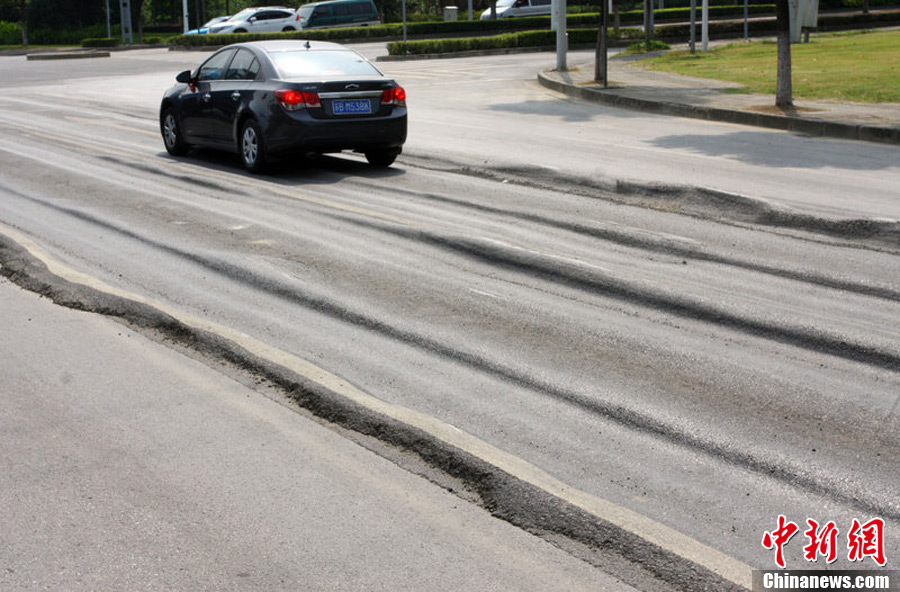 江苏无锡连日高温 道路被晒成“波浪路”