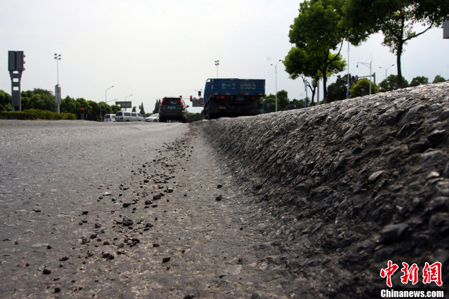 江苏无锡连日高温 道路被晒成“波浪路”