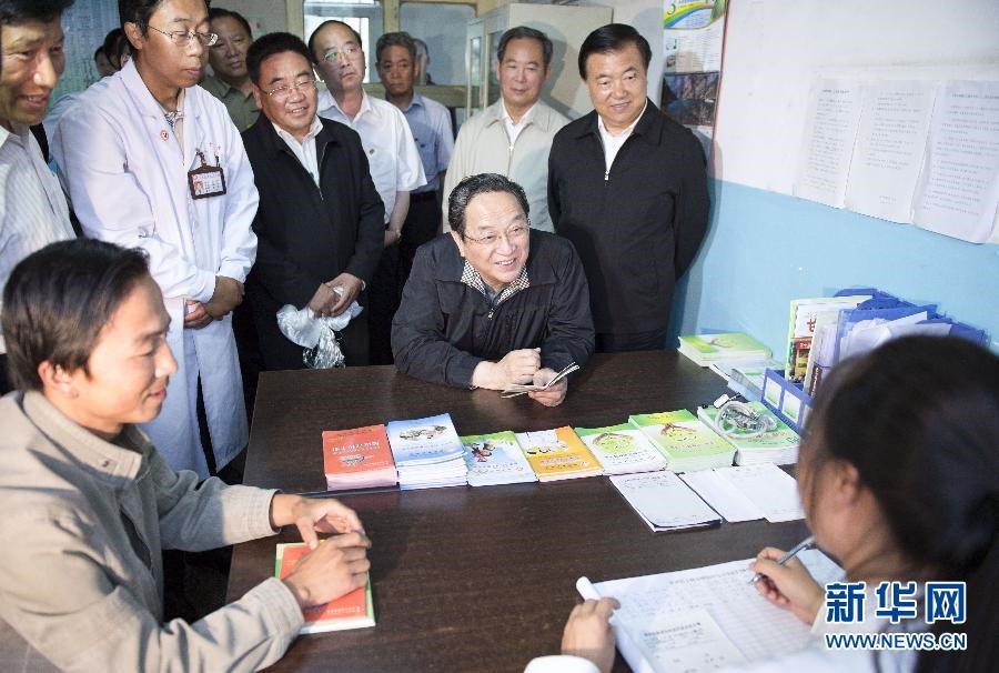 按照中央开展党的群众路线教育实践活动安排,中共中央政治局常委近期分别到各自的第一批教育实践活动联系点调查研究、了解情况,指导教育实践活动开好头、起好步。这是7月7日,俞正声在甘肃甘南藏族自治州夏河县王格尔塘镇卫生院调研。 新华社记者 李学仁 摄 图片来源:新华网
