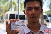 7月17日,三沙市政府在西沙永兴岛发放首批共78张居民身份证及流动人员居住证。其中居民身份证10张,流动人口居住证共68张。三沙市副市长冯文海介绍,三沙市居民身份证和居住证的发放有助于进一步规范人口管理、保障公民合法权益,同时也是维护南海主权的具体体现。图为老渔民冯明芳向记者展示居民身份证。中新社发 王子谦 摄