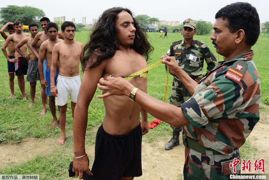 当地时间2013年7月15日,印度阿姆利则,印度征兵活动启动,准新兵们参加体能和医疗测试。