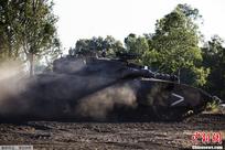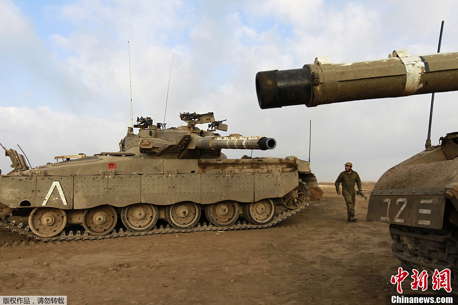当地时间7月17日,以色列在戈兰高地举行军事演习,以军精锐部队和装备纷纷亮相。图为以军梅卡瓦主战坦克亮相演练场。