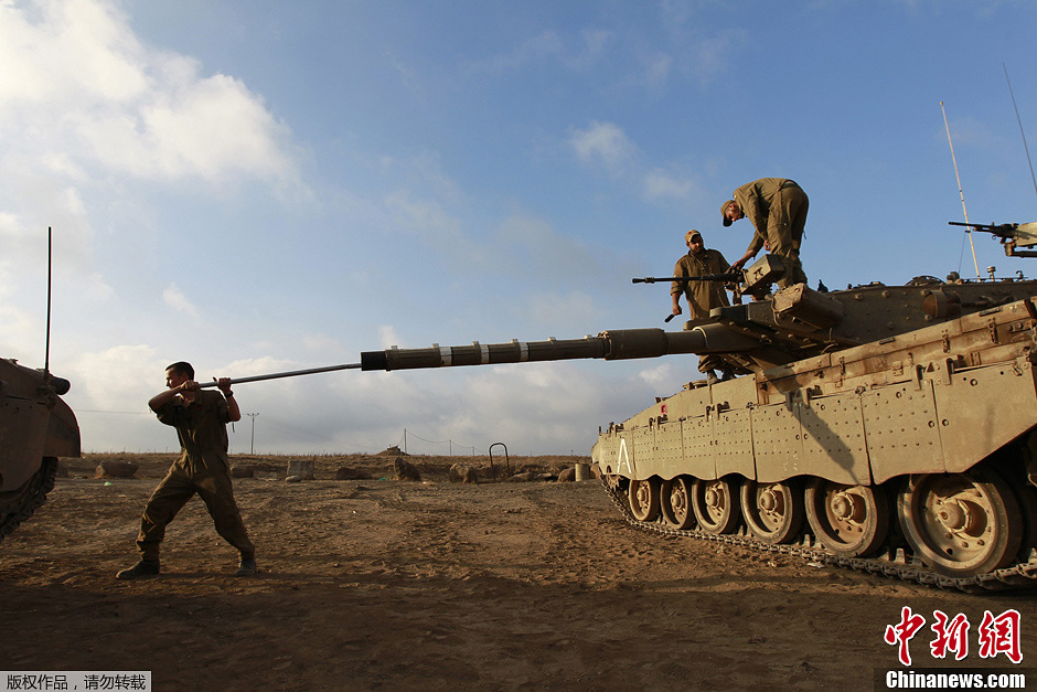 当地时间7月17日,以色列在戈兰高地举行军事演习,以军精锐部队和装备纷纷亮相。图为以军梅卡瓦主战坦克亮相演练场。