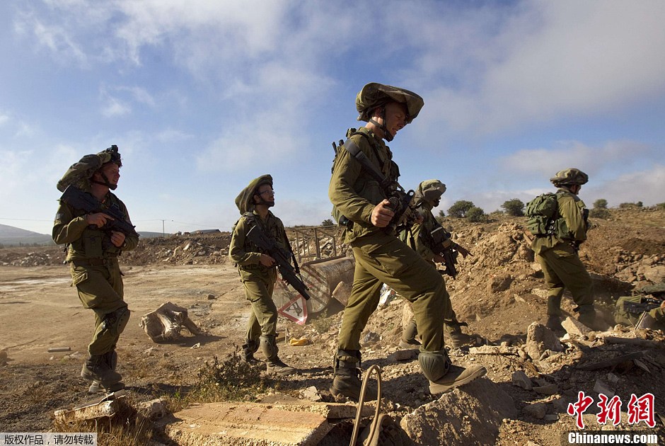 以色列士兵在戈兰高地举行军事演习