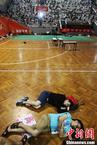 “考研大军”3600人体育馆“上大课” 累了直接趴地睡