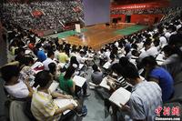 2013年7月18日,山东济南皇亭体育馆内,再现一位老师为3600名“考研族”上大课的壮观场面。 据了解,由于今年大学毕业生逢最难“就业季”,山东省今年10万大学毕业生没有就业, 面对就业难的严峻形势,不少没有就业的毕业生加入到考研大军中逃避就业的严峻形势。陈宁 摄 图片来源:东方IC 版权作品 请勿转载