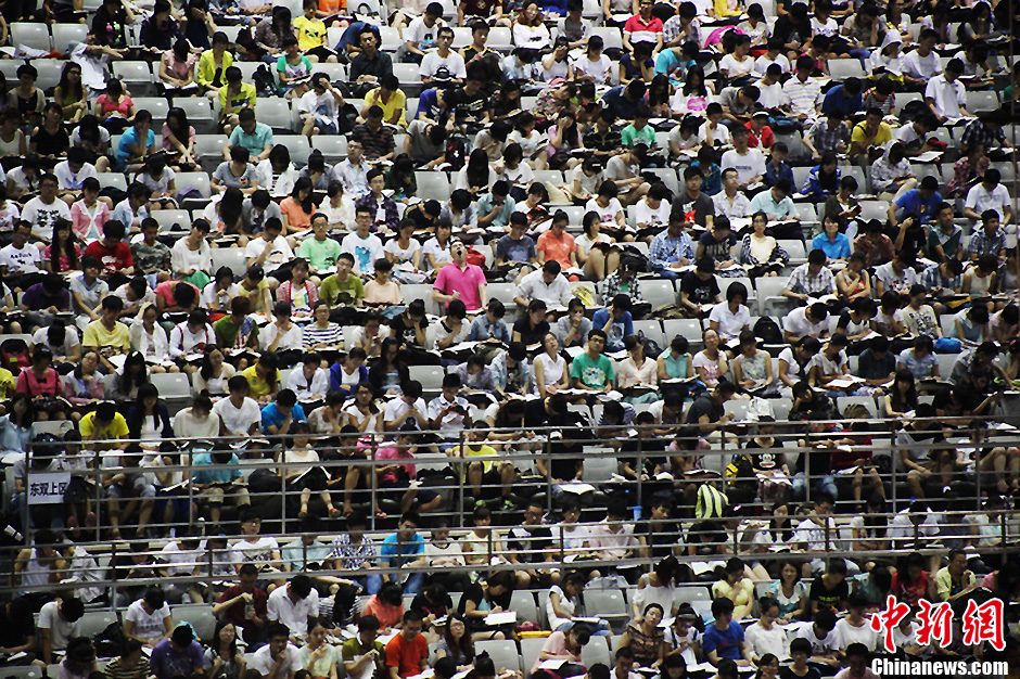 2013年7月18日,山东济南皇亭体育馆内,再现一位老师为3600名“考研族”上大课的壮观场面。 据了解,由于今年大学毕业生逢最难“就业季”,山东省今年10万大学毕业生没有就业, 面对就业难的严峻形势,不少没有就业的毕业生加入到考研大军中逃避就业的严峻形势。陈宁 摄 图片来源:东方IC 版权作品 请勿转载