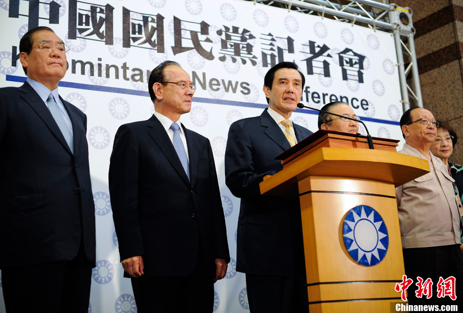 7月20日傍晚,中国国民党党主席选举在台北揭晓,现任党主席马英九共获得202750票,得票率为91.85%,当选连任。图为马英九在当选后召开记者会。刘震 摄