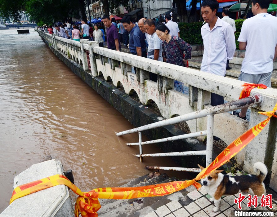 7月20日16时,因四川达州洲河上游持续强降雨,达州城区迎来了今年以来的最大洪峰。在地势低洼处,洲河水位离城区滨河路不到1米。沿河两岸市民则显得很淡定,店铺照常营业,钓鱼喝茶打牌的市民比比皆是。张骥 摄