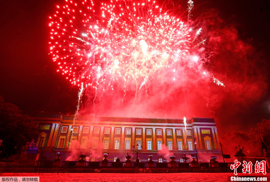 当地时间2013年7月21日,比利时布鲁塞尔,皇家宫殿上空燃放绚烂焰火庆祝国庆日。当日,现年79岁的比利时国王阿尔贝特二世在比利时首都布鲁塞尔的皇宫签署退位诏书,其53岁长子、王储菲利普随后宣誓就任比利时第7任国王。