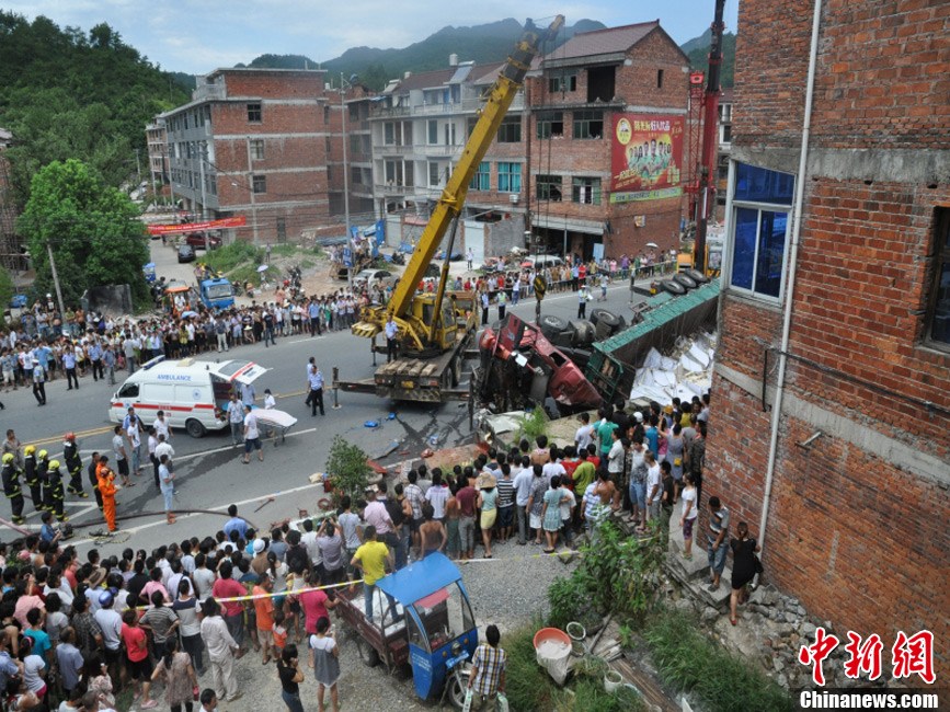 中新网金华7月22日电(见习记者 胡丰盛)22日,记者从浙江省浦江县公安局获悉,上午9点半,浦江县联盟村傅店路段发生一特大车祸,一辆挂式货车在途经杭口岭长下坡后侧翻冲向对向车道,接连撞倒各类车辆8辆和路边行人,造成至少8人死亡,多人受伤。
