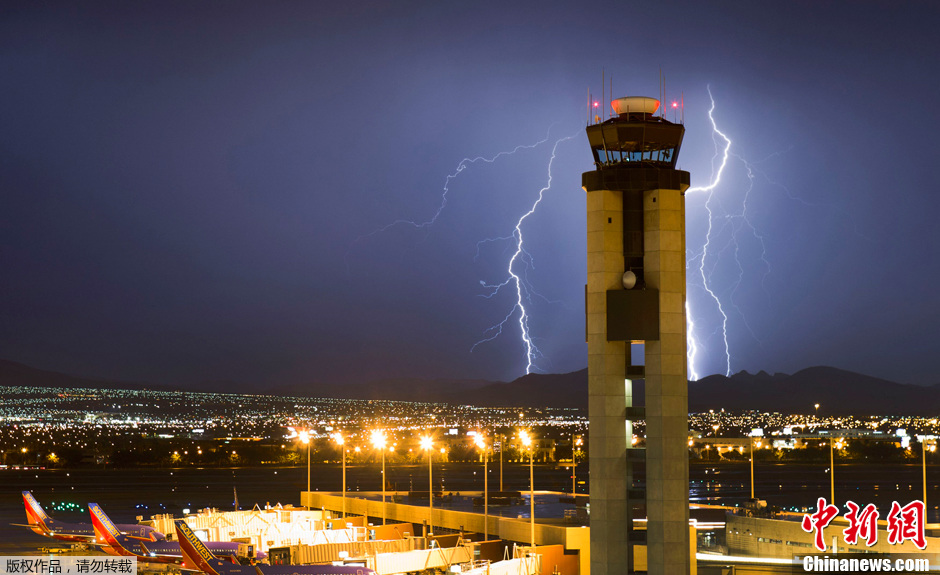 当地时间2013年7月19日,美国拉斯维加斯遭闪电袭击。