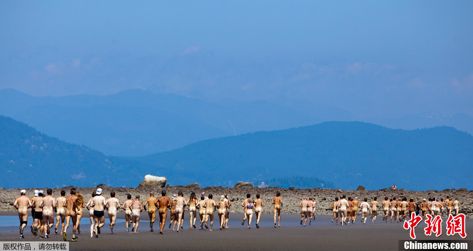 加拿大沉船滩举行裸体跑 选手纷纷全裸出动