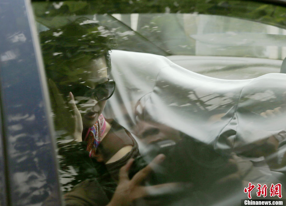 7月22日,李某某等5人涉嫌轮奸案在北京市海淀区人民法院举行庭前会议,会议结束后,梦鸽掩面乘坐出租车离开,未接受采访。中新社发 刘关关 摄