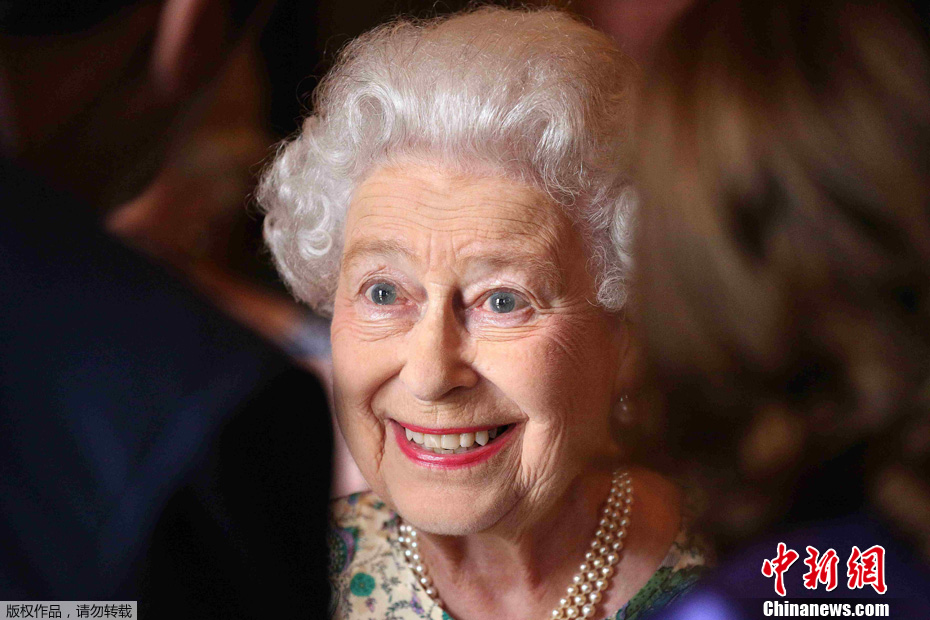 当地时间2013年7月23日,英国伦敦,威廉王子和凯特王妃抱着刚出生的小王子在圣玛丽医院外首次亮相。图为英女王露出幸福笑容。