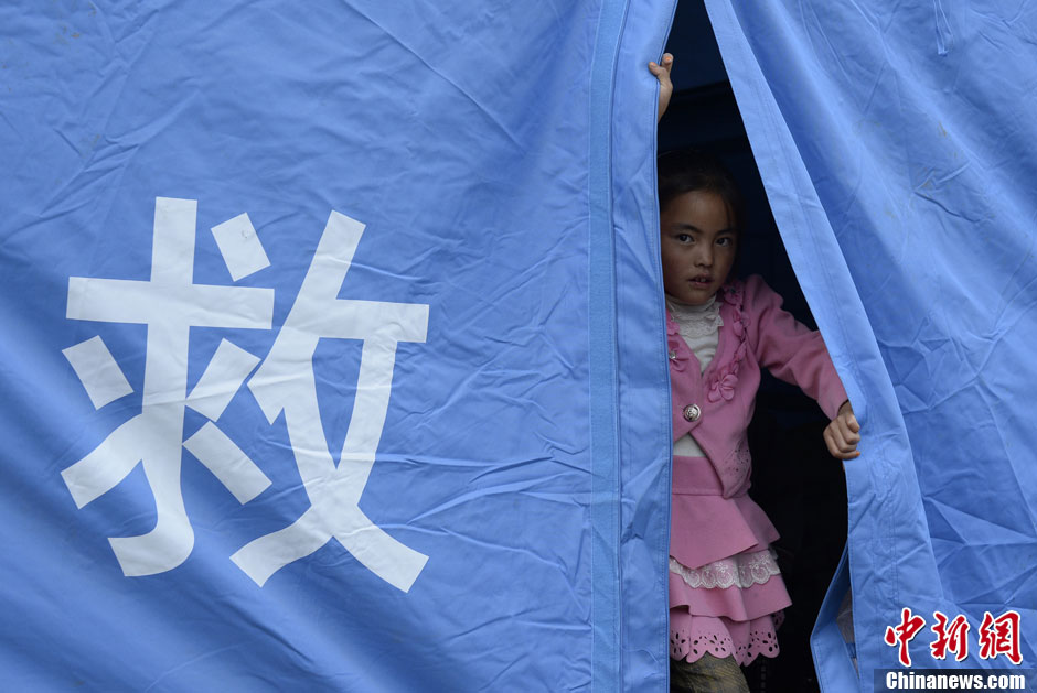 7月24日,甘肃省定西市岷县永光村的民众基本住进救灾帐篷,一名小女孩在帐篷内玩耍。永光村是此次岷县漳县地震的重灾区。中新社发 侯宇 摄