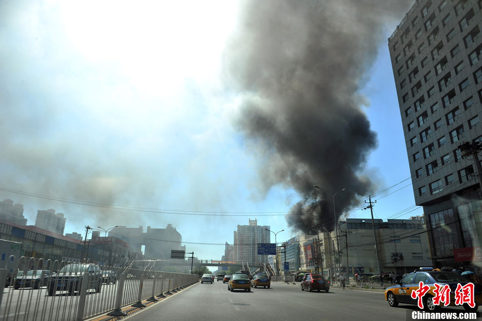 北京双井家乐福起火 现场黑烟滚滚遮云蔽日