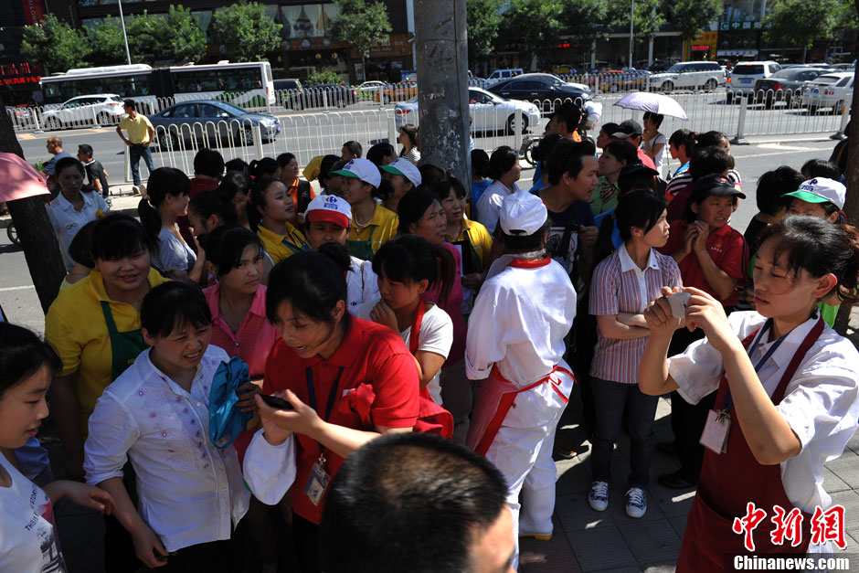 7月24日下午,北京朝阳区双井家乐福超市楼顶仓库发生火灾,现场浓烟滚滚,黑色烟雾直通云霄遮云蔽日。图为双井家乐福和百安居员工顾客撤离现场。中新网记者 金硕 摄