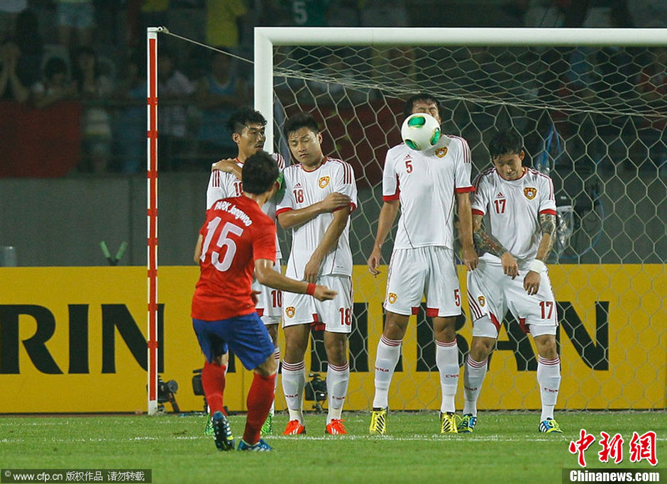 7月24日晚,东亚杯再战一场,中国男足在韩国华城体育场与东道主韩国展开一场恶战。经过90分钟的鏖战,双方互交白卷0-0握手言和。此役过后中国队两战皆平,最后一战将对阵澳大利亚。图为比赛进行中。图片来源:CFP视觉中国