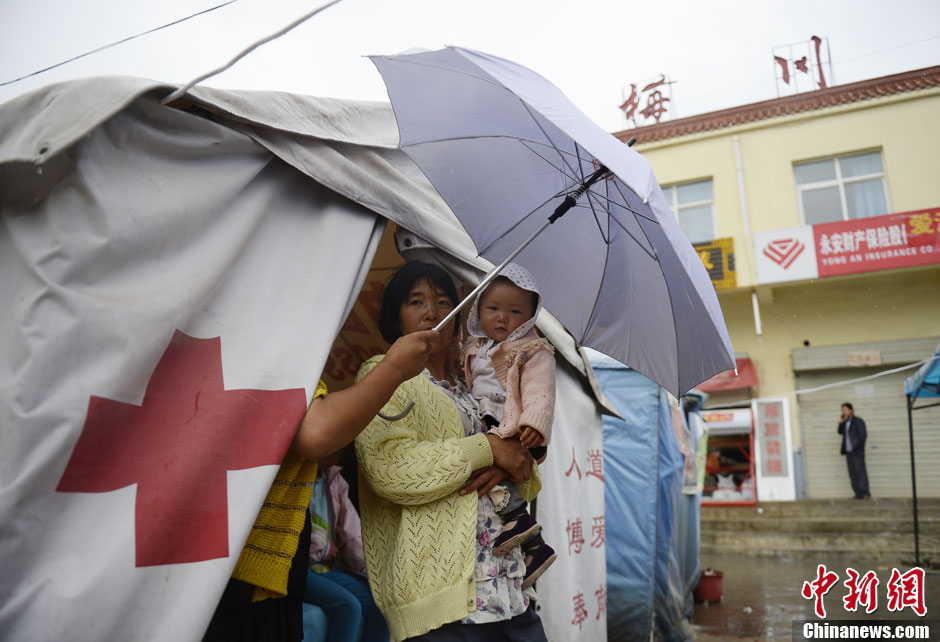 7月24日傍晚,一场中雨袭扰甘肃省定西市岷县梅川镇,给地震灾区民众增加抗灾困难。中新社发 侯宇 摄