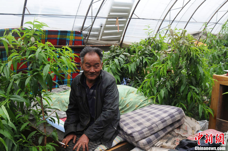 来西宁已经四十多年的张庚华老人已经72岁了,23日拆迁时,他们一家租住的民房被拆,来不及搬走屋内家什,无处可去的老两口暂时栖身于附近一座种满桃树的温室大棚里。胡友军 摄