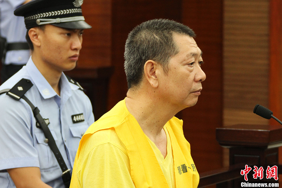 7月26日上午,被网友称为“房叔”的原广州城管局番禺分局政委蔡彬因涉嫌受贿罪在广州海珠区法院受审。广州市检察院指控,蔡彬在任广州市公安局番禺分局副局长、广州城管综合执法局番禺分局局长和政委期间,非法收取他人财物,为他人谋取利益,涉嫌受贿共计275万元人民币。中新社发 奚婉婷 摄