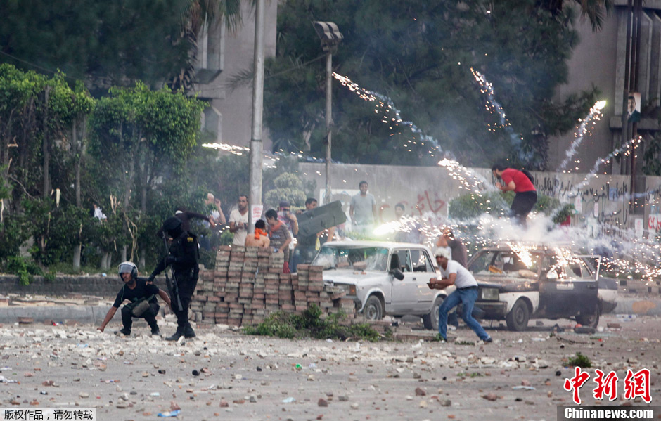 当地时间2013年7月27日,埃及开罗,穆尔西支持者爆发大规模游行示威,和警方发生激烈冲突,冲突造成逾百人死亡。埃及数百万民众26日起在多个城市举行大规模游行示威,穆尔西支持者与反对者以及埃及警方在开罗、亚历山大等地发生的冲突仍在持续。