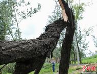 安徽淮北遭龙卷风突袭 刮倒大树电线杆